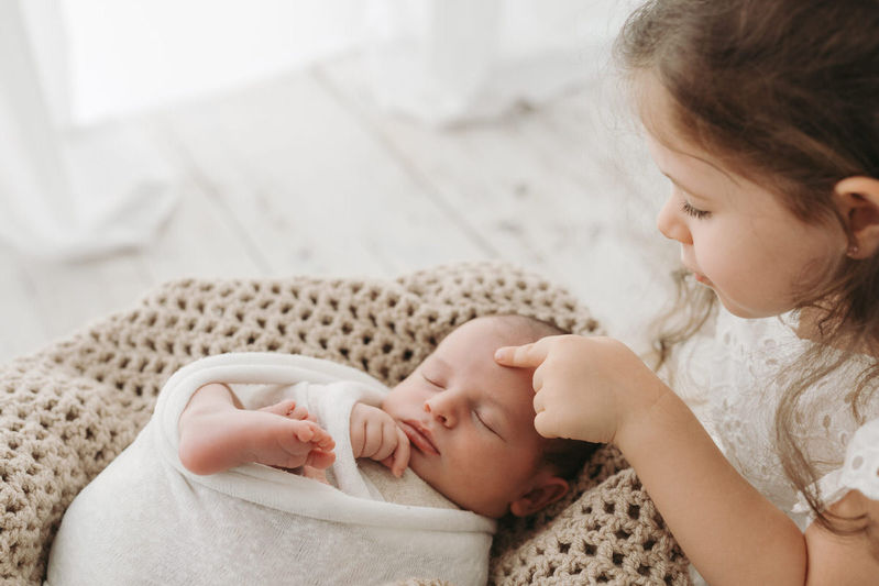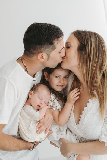 Durante il servizio newborn, la magia consiste proprio nel fotografare il nuovo arrivato con i genitori e con eventuali fratelli maggiori. Tutti sono i benvenuti!